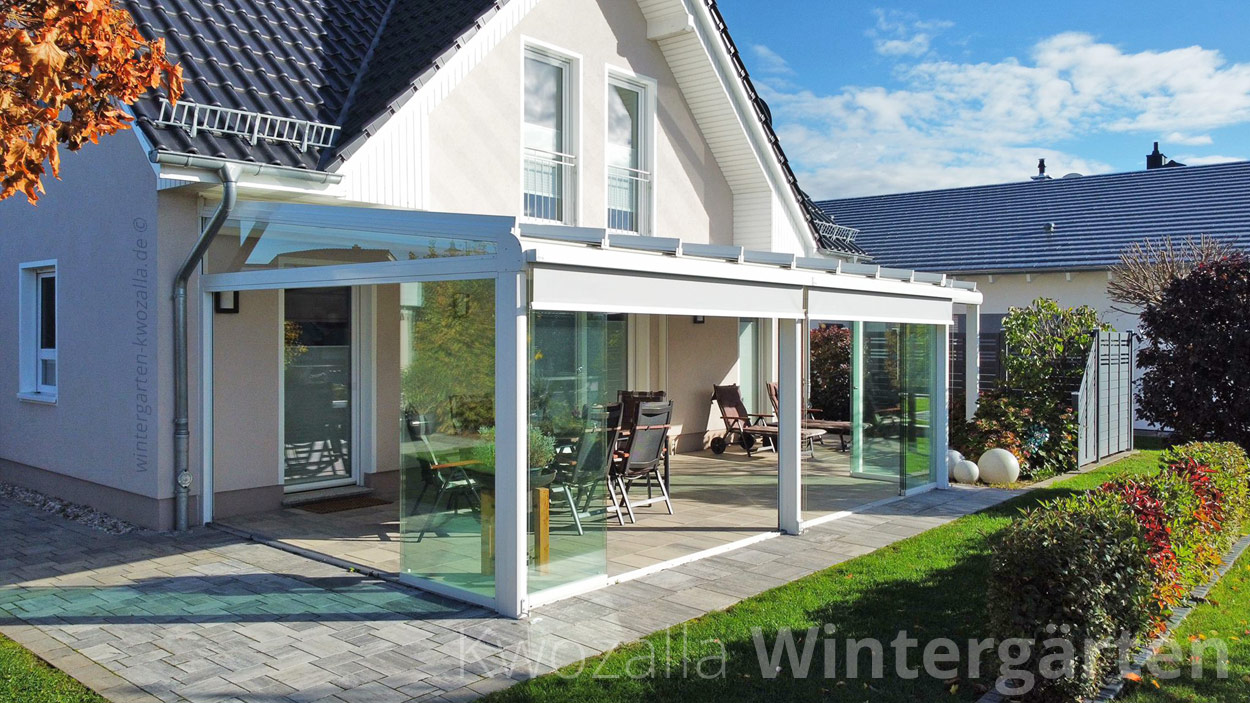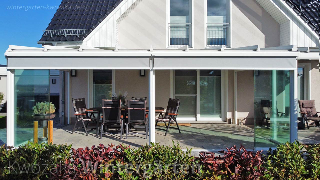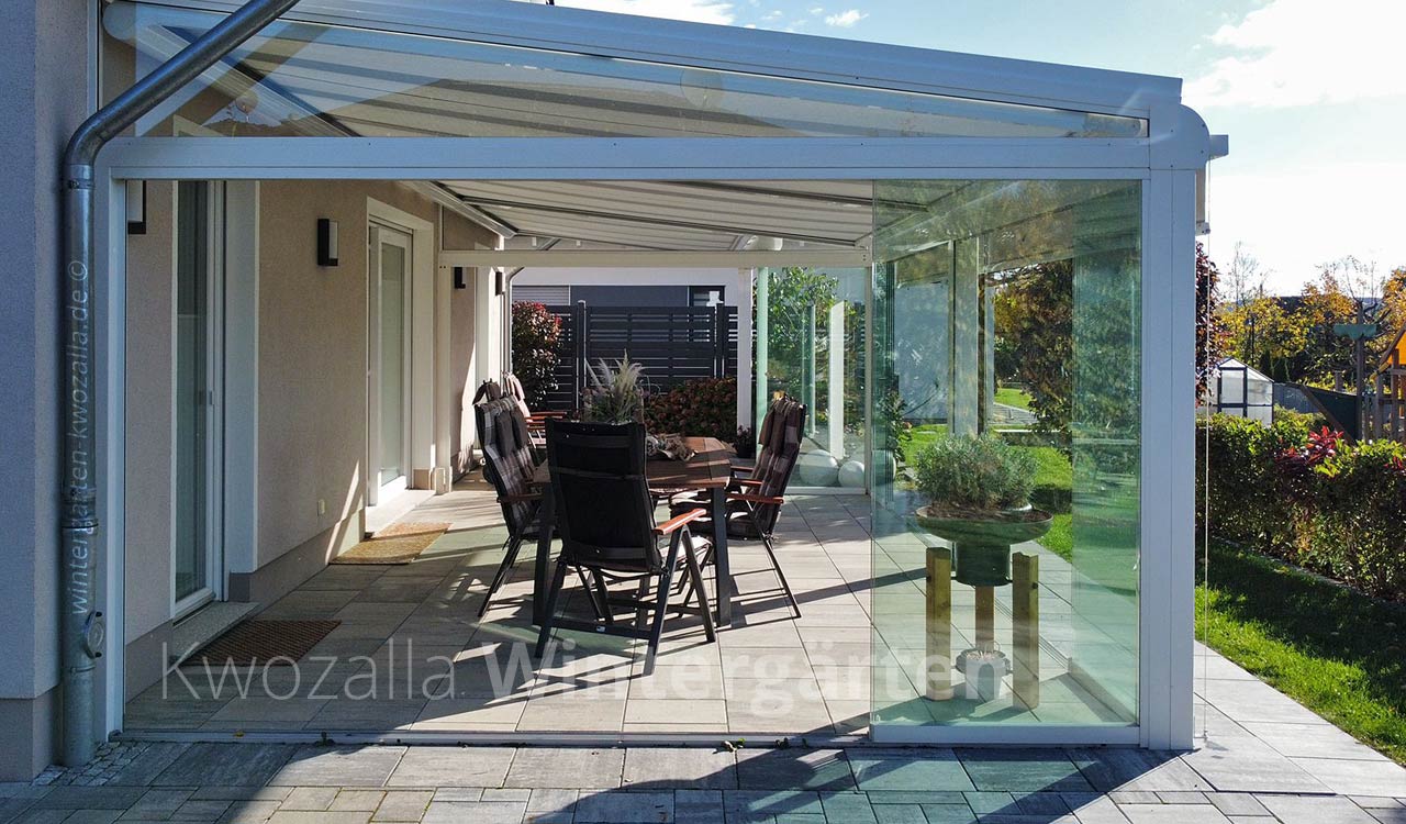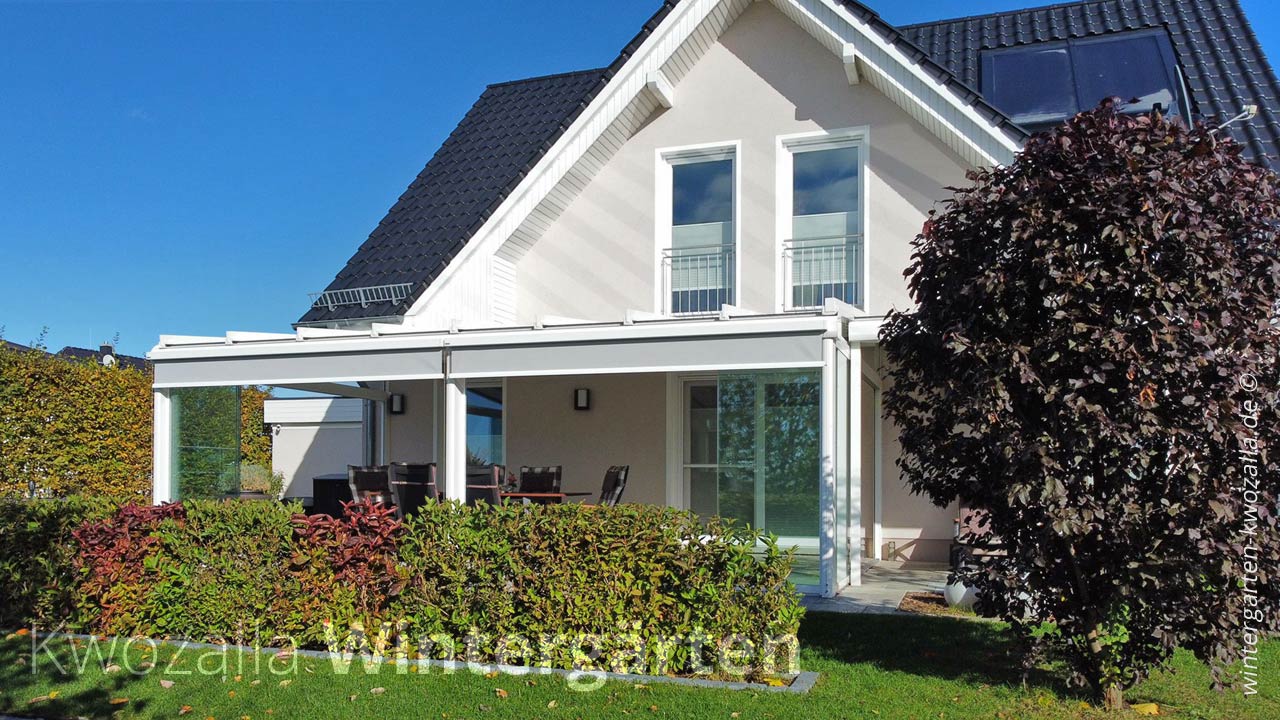 Um sich eine schicke Wohlfühloase zu überschaubaren Kosten zu schaffen, setzen viele Hausbesitzer mit Vorliebe auf einen Kaltwintergarten. Wir bieten dafür eine breite Auswahl an Designs an. Die aus stabilen Glaselementen und einem robusten Rahmen aus pulverbeschichtetem Aluminium bestehenden Glashäuser sorgen dafür, dass sich bei wärmeren Temperaturen der eigene Garten und die Terrasse bei jeglichen Witterungsbedingungen komplett nutzen lassen. Und wenn die Sonne hinein gelassen werden soll, werden die Schiebeelemente aus Glas einfach beiseite geschoben. Selbstverständlich montieren wir beim Bau der Wintergärten auch passenden Sonnenschutz und Sichtschutz – ob Horizontal- oder Vertikalmarkisen. Als Wintergartenbauer können wir auch schicke Eckwintergärten entwerfen und errichten, die Ihr Haus perfekt ergänzen. Für die Dachgestaltung bieten wir alle gängigen Formen an – vom Pultdach über Trapezdächer bis hin zum Satteldach für den Wintergarten.